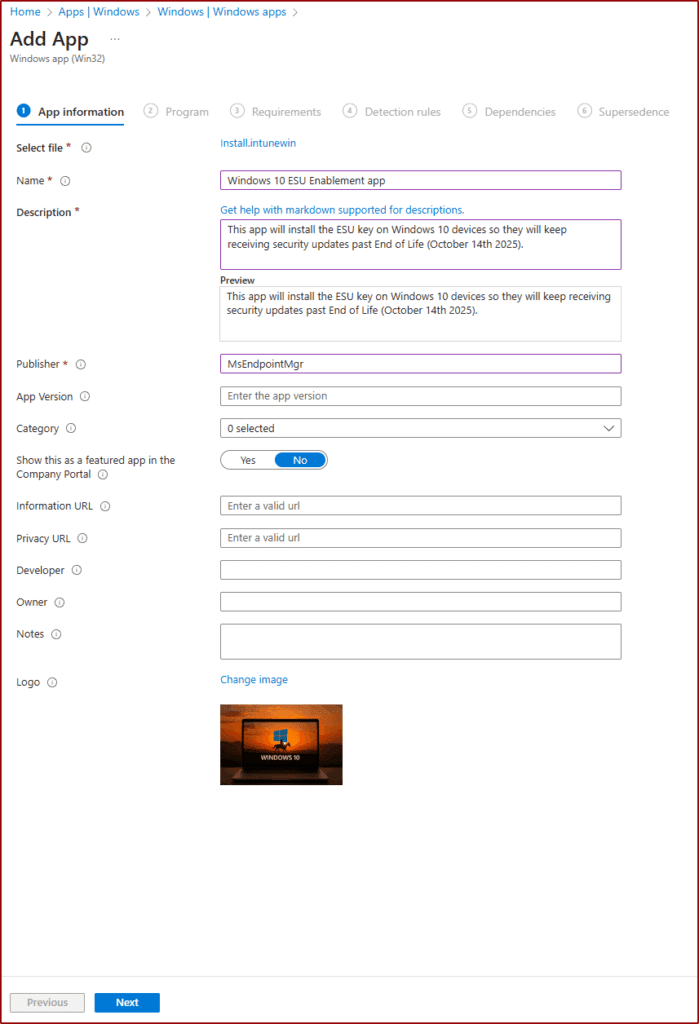 Alternative Method: Enabling Windows 10 ESU with Intune Win32App