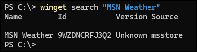 winget search "MSN Weather"