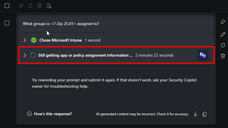We’re at that awkward stage where some people talk about Security Copilot like it’s magic, some are terrified of the potential cost (I got burned), and most of us are staring at an empty prompt bar thinking “What am I actually supposed to type in here and why wouldnt I just do this in the Intune Admin Centre instead of burning $9 for the privilege of using a prompt”.