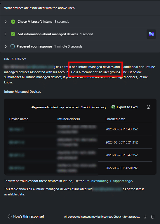 The point is, the embedded Copilot experience in Intune isn’t trying to replace Explorer or the documentation. It acts more like the guide between them. It handles the interpretation, the summaries, the “what’s actually going on here?” questions, and the troubleshooting paths that Explorer can’t provide. Then, when necessary, it sends you to the exact tool or reference that will actually answer your question.
