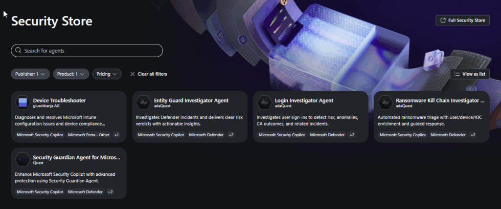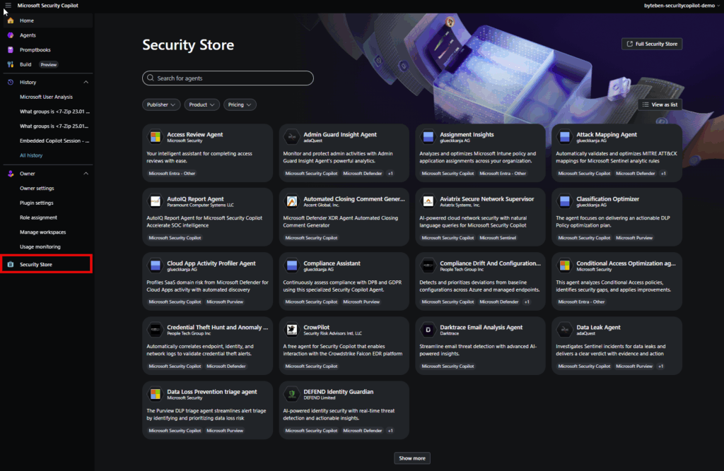 The Security Store is where you will find agents built by Microsoft, partners and community heros.