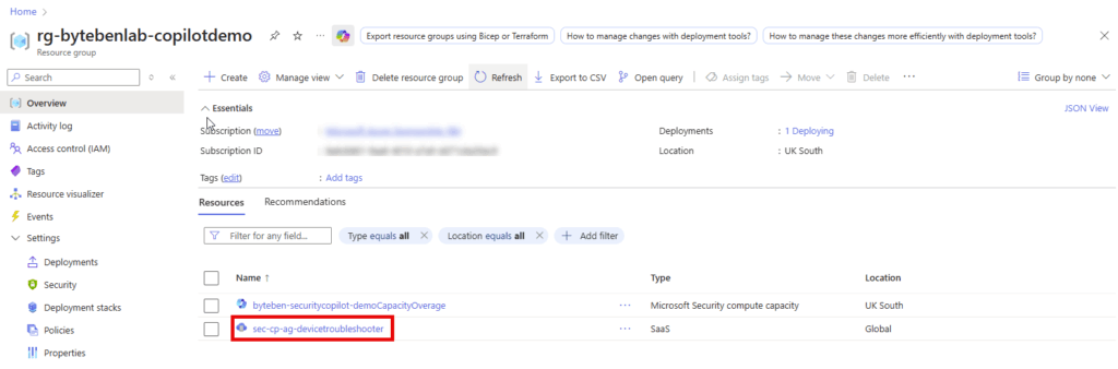 Once you understand that the configured SCU’s and overage facilitate how much you can overdress your kebab, the rest of the Security Copilot setup starts to make a lot more sense. We will look at this resource again later when we deep dive billing.