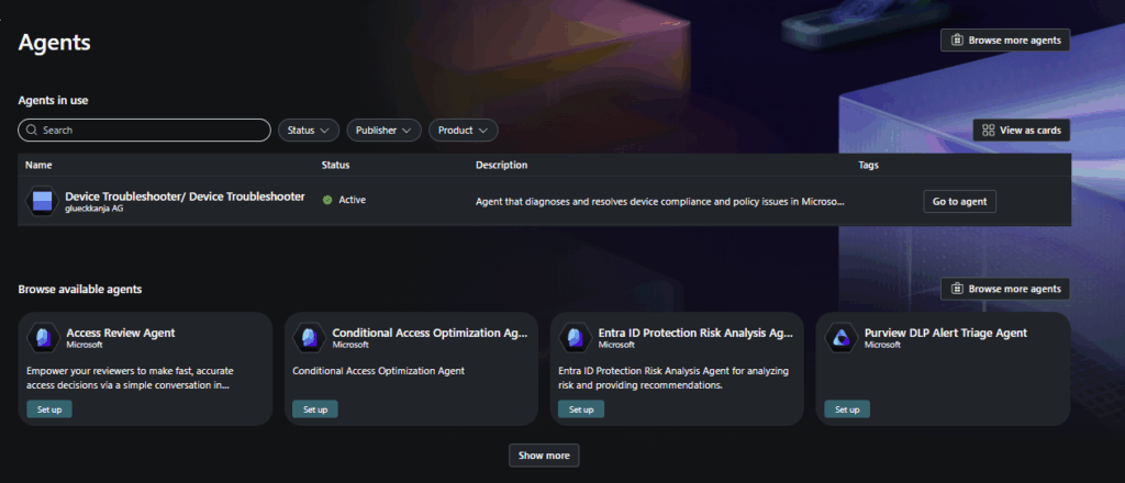 Shoutout to Ugur Koc and colleagues at Glueckkanja AG for jumping feet first into the agentic world. If you want to read Ugur’s blog and see all the cool tools he is building these days, head over to https://ugurkoc.de Le’ts take a look at the teams Device Troubleshooter Intune agent for a quick spin.