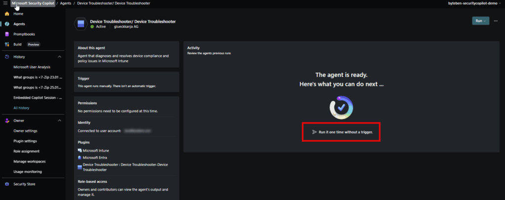 But thats OK, ill dig into that later. The point here was to show you how to find and run Agents that are being added to the Microsoft Security Store. Even though this agent run wasn’t succesful, it was insightful to see all the prompts it aws running through. Clearly alot of work goes into building an agent!