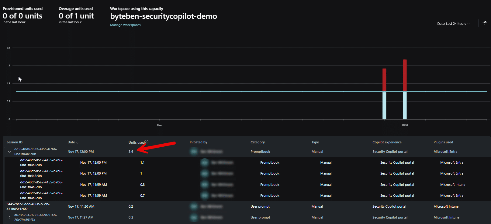 The Provisioned security compute units per hour box in the image above is your always-on compute. Azure will not let you go below one, because Copilot needs at least one SCU to function. You pay for this every hour, whether Copilot is doing anything or not.