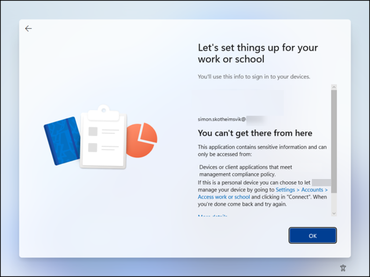 “You can’t get there from here. This application contains sensitive information and can only be accessed from devices or client applications that meet management compliance policy.”