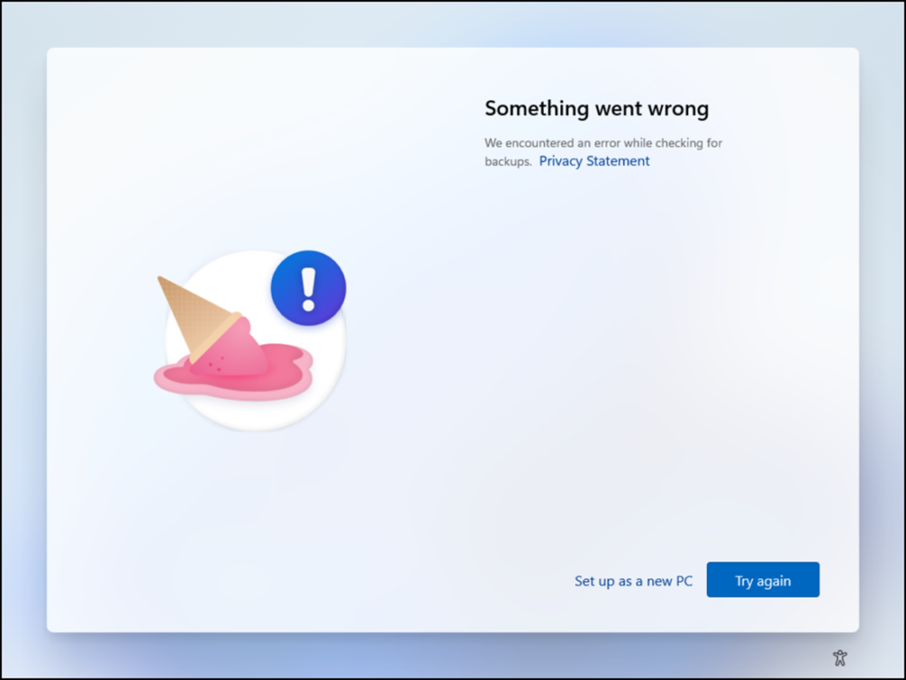 A small link beneath “Set up as a new PC” is technically the escape hatch. But it’s problematic because: